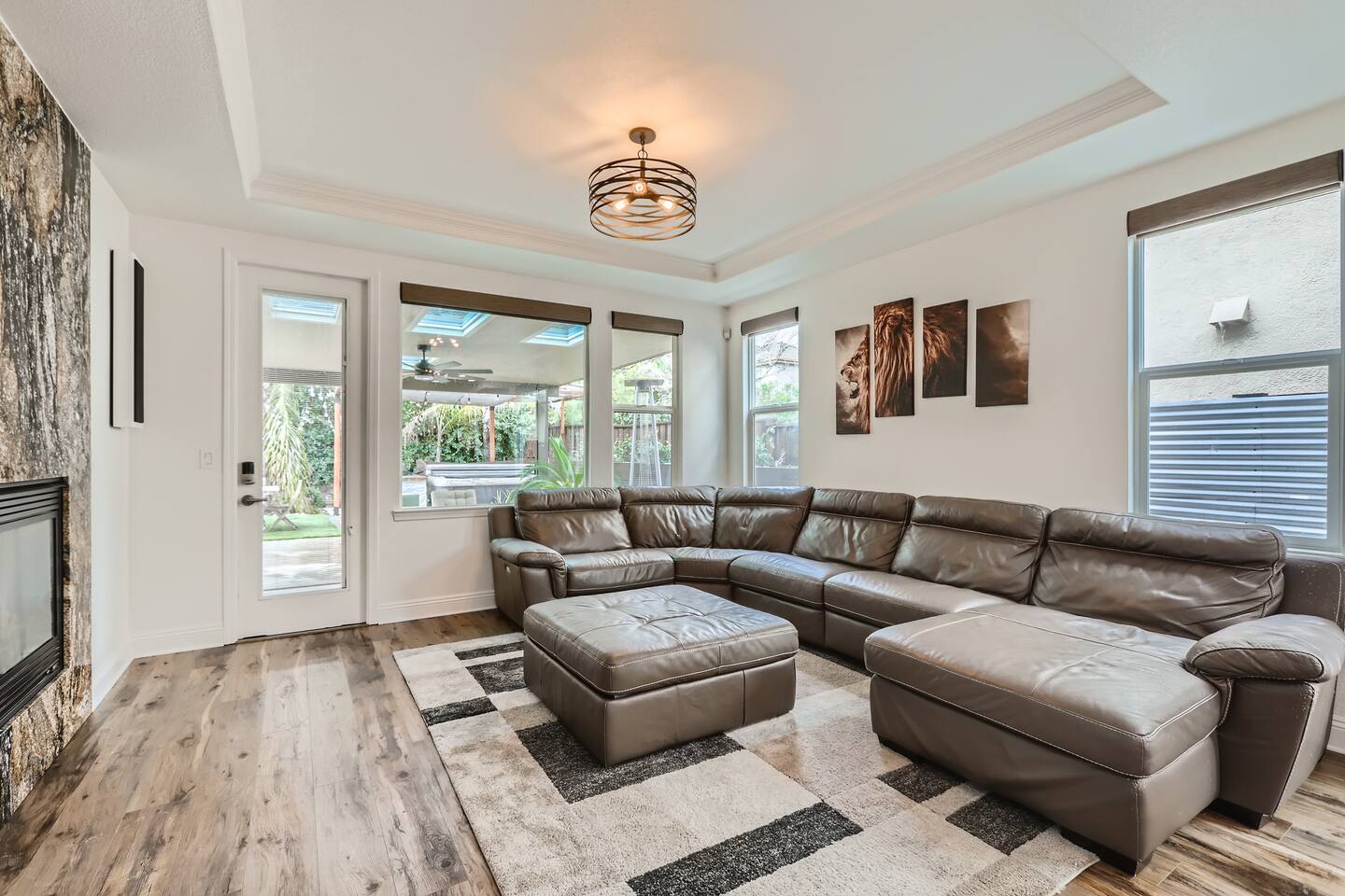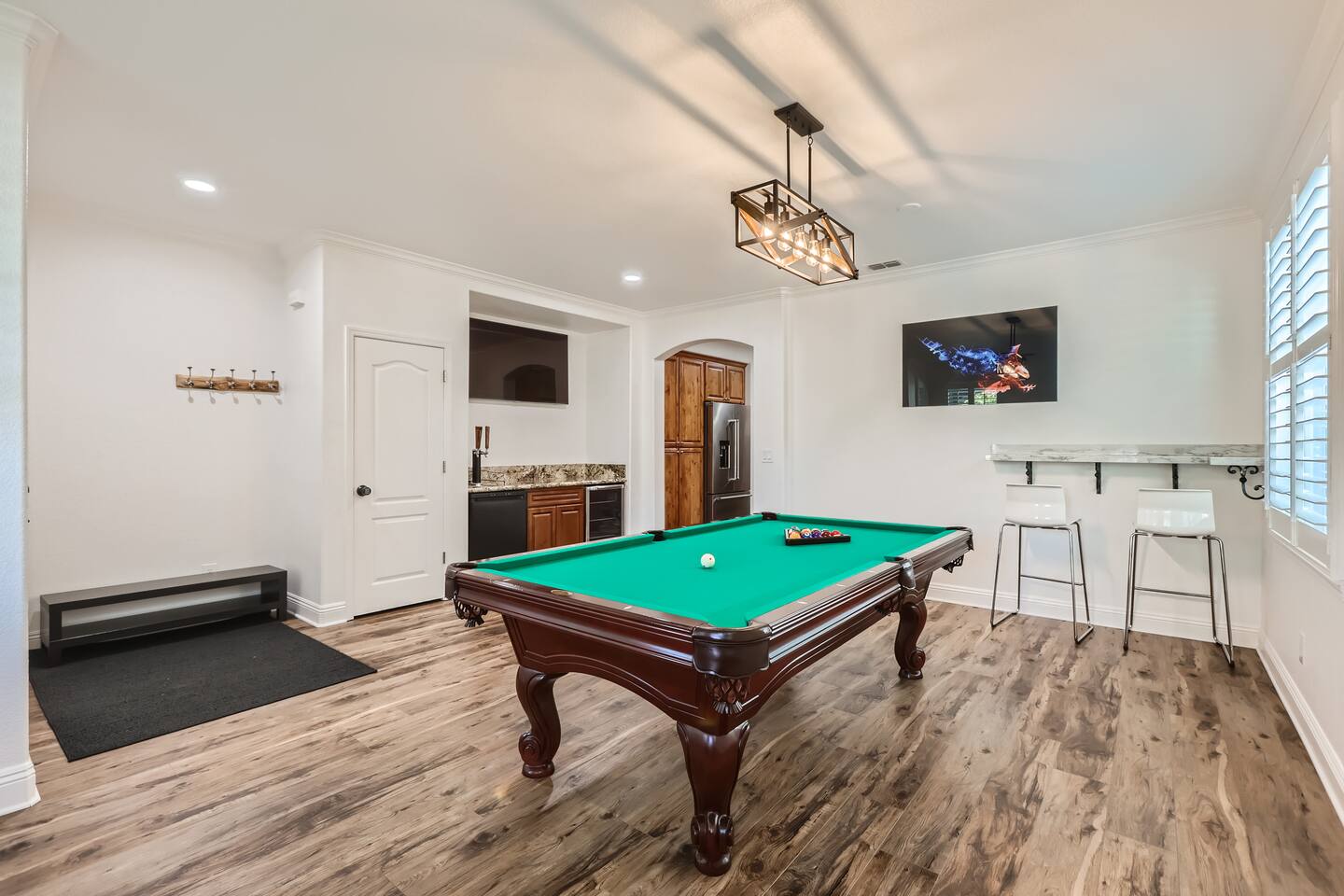 This beautiful 3 Bedroom, 2 bathroom home is perfect for your next getaway! Enjoy a luxurious stay in a spacious home with a private jacuzzi, game room, and a manicured yard. Relax in the hot tub or challenge your friends to a game of pool in the game room. Spend time outdoors in the yard, perfect for barbecues and outdoor activities. Enjoy a peaceful and luxurious stay in this amazing property!